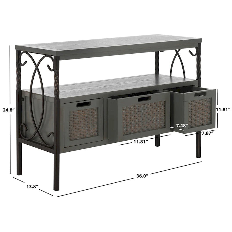 The Console masterfully blends vintage details with modern farmhouse charm. An extra shelf and three roomy drawers with woven wicker fronts make light work of organizing life's clutter, and its natural finish shines against this piece's artfully twisted frame.